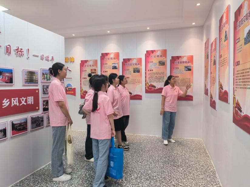 庙王村新时代文明实践站所展示了我国农业生产、文化传承、基层党建等方面取得的丰硕成果。马克思主义学院教师李春霞详细讲述了抗美援朝那些血与泪的英雄事迹以及焦裕禄同志治理沙丘的事迹,队员们深刻感受了爱国主义以及为了正义和和平无畏牺牲的精神,深刻认识到无论是在战争年代还是和平时期,都有无数的英雄和楷模,用自己的行动诠释着责任与担当,为国家和人民利益付出一切。队员们表示这种精神将永远激励着自己,在面对困难和挑战时勇往直前,毫不退缩。