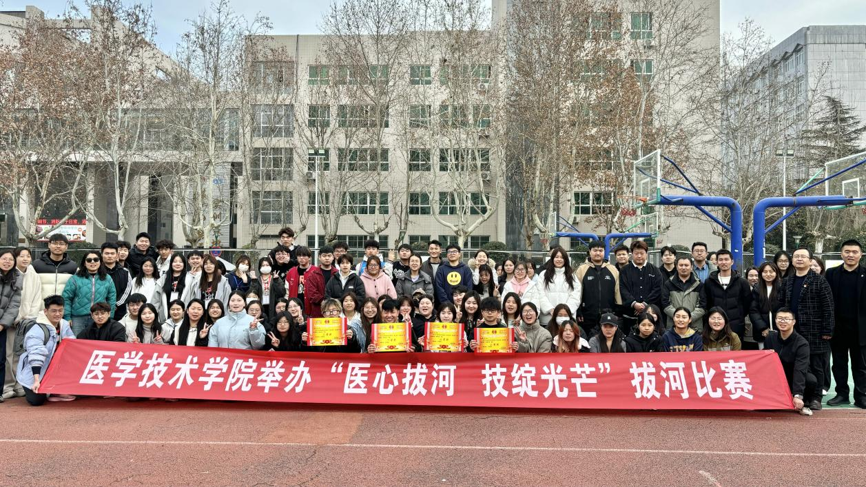 2月27至28日,医学技术学院在咸阳校区操场举办“医心拔河·技绽光芒”拔河比赛。全院24个代表队360名同学参加比赛,现场气氛热烈非凡。
