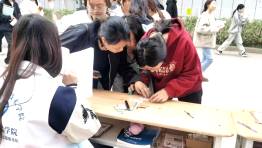 “反诈智场”则充分展现学生智慧,大家围绕刷单陷阱、AI换脸等主题,通过手抄报、手工作品表达反诈态度。创作者积极向围观同学分享设计思路。活动结束后,优秀作品在校园公共区域展览一周,持续传播反诈知识。