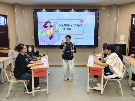 为普及心理健康知识,提升心理骨干队伍的专业素养,4月15日晚,医学护理学院在105教室举办"心海竞帆——心理百科擂台赛"。全体辅导员、心理委员及宿舍信息员代表共同参与。