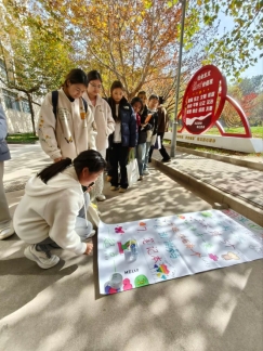 “滚瓶子传情”活动设置“滚瓶答题”“默契配合”等趣味环节,以轻松愉快的游戏形式,引导学生主动开口、真诚沟通,打破人际交往中的陌生感。现场特设的“温暖寄语墙”成为活动亮点,同学们将对同伴的鼓励、对校园的热爱、对未来的期许写在便签上,贴满整面墙壁,红色的便签纸与白色的墙面相映,成为校园中一道充满人文温度的风景线。活动全程笑声不断,学生在互动中增进了解、收获友谊,有效提升了人际交往能力。