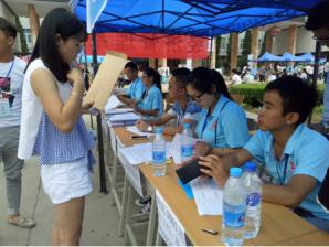 学生入党积极分子正在接待新生
