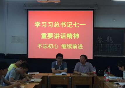 2016年7月4日,电子工程系党总支在一号教学楼406教室召集所有教工、学生党员集中学习了习近平总书记“不忘初心,继续前进”建党95周年“七一”讲话精神。系党总支书记杨建康主持会议。