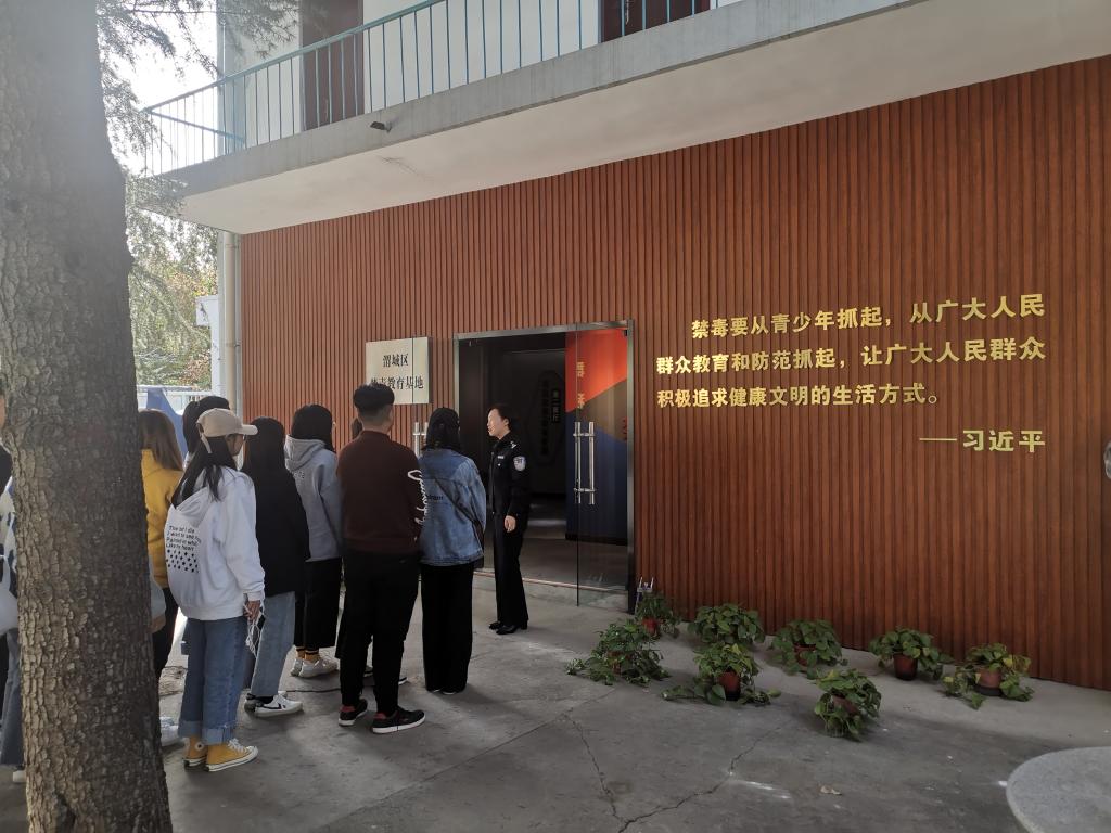 10月28日下午,经济管理学院辅导员田冲带领入党积极分子、学生干部和“逐梦”志愿者服务队的35名学生代表前往咸阳市渭城区戒毒中心教育基地开展以“青春无毒·梦想无限”为主题的禁毒宣教活动。
