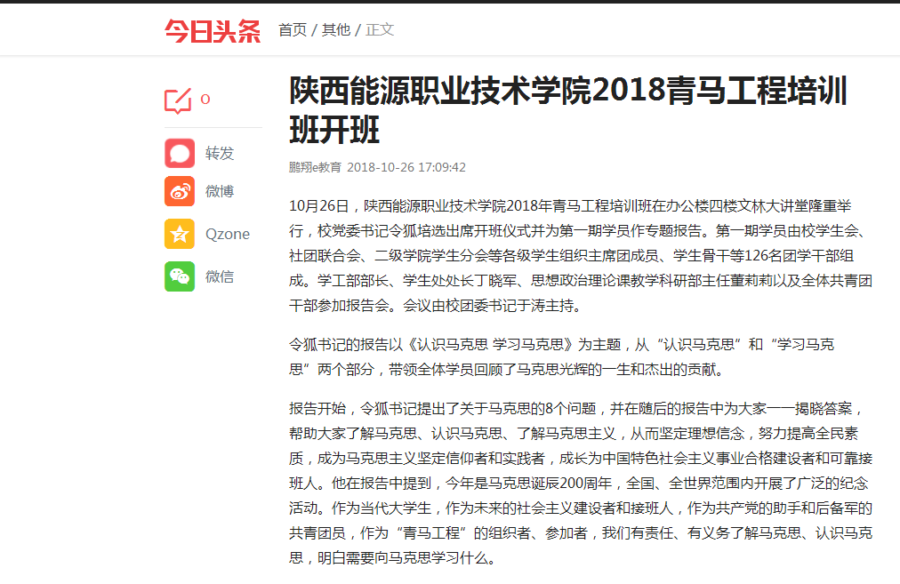 10月26日,陕西能源职业技术学院2018年青马工程培训班在办公楼四楼文林大讲堂隆重举行,校党委书记令狐培选出席开班仪式并为第一期学员作专题报告。第一期学员由校学生会、社团联合会、二级学院学生分会等各级学生组织主席团成员、学生骨干等126名团学干部组成。学工部部长、学生处处长丁晓军、思想政治理论课教学科研部主任董莉莉以及全体共青团干部参加报告会。会议由校团委书记于涛主持。