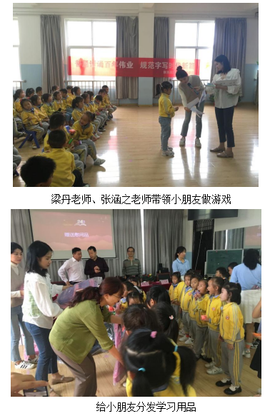 随后,人文与教育学院教师梁丹和张涵之通过带领小朋友朗诵儿歌、做游戏等方式,引导小朋友认识讲好普通话的重要性,自觉养成讲普通话的习惯,增强小朋友学习普通话的热情。互动游戏结束后,于秋玲代表陕西能源职业技术学院向西吴中心幼儿园赠送文体用品,并鼓励小朋友们好好学习、天天向上,为祖国繁荣发展做出贡献。