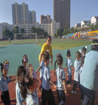 秦汉新城阳光幼儿园举办的“趣味运动会之大圣归来”志愿服务现场