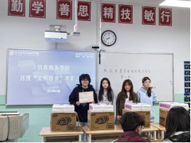 为进一步规范学生宿舍管理,营造整洁、文明、和谐的住宿环境,4月8日,信息商务学院开展3月份“文明宿舍”表彰活动,对在本月宿舍文明建设中表现优异的集体予以通报表彰。