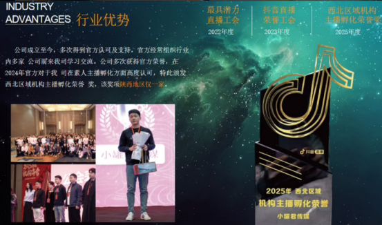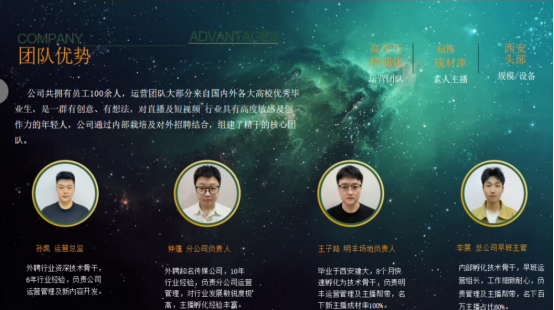 西安小罐君传媒有限公司主要以娱乐经纪人、网络娱乐主播、电商直播、网红孵化、达人孵化、短视频运营、个人IP打造、组织文化艺术活动、MCN机构服务等业务,公司尊崇"踏实、拼搏、责任"的企业精神,并以诚信、凝聚、发展、共创。共赢的经营理念,为主播创造良好的直播环境,打造一站式主播服务平台,以全新的合作模式,完善的培训体系,周到的运营服务为生存根本,我们始终坚持服务至上,用心服务于主播,坚持用自己的专业去孵化塑造主播。