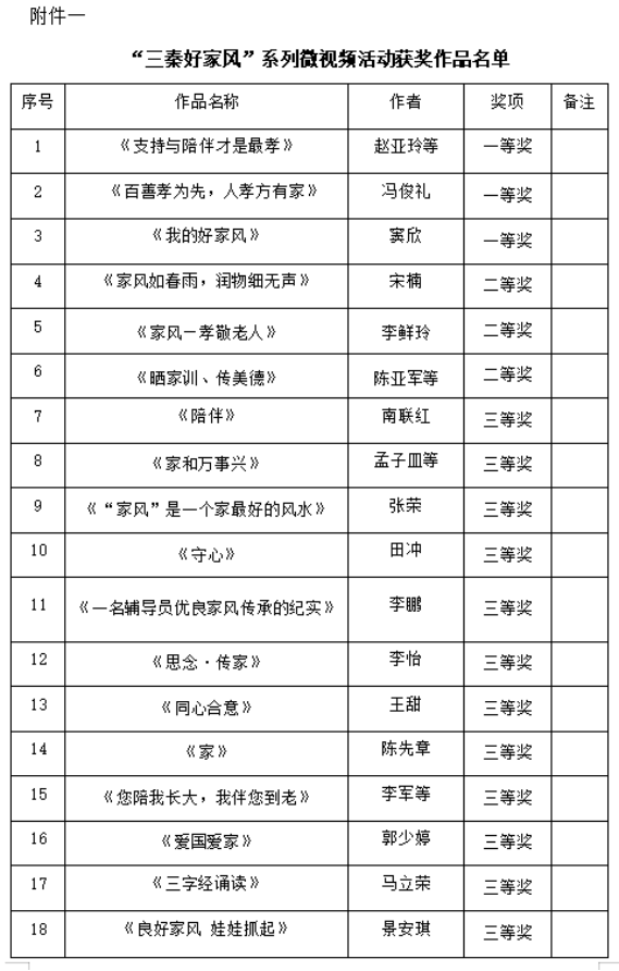 附件一 “三秦好家风”系列微视频活动获奖作品名单