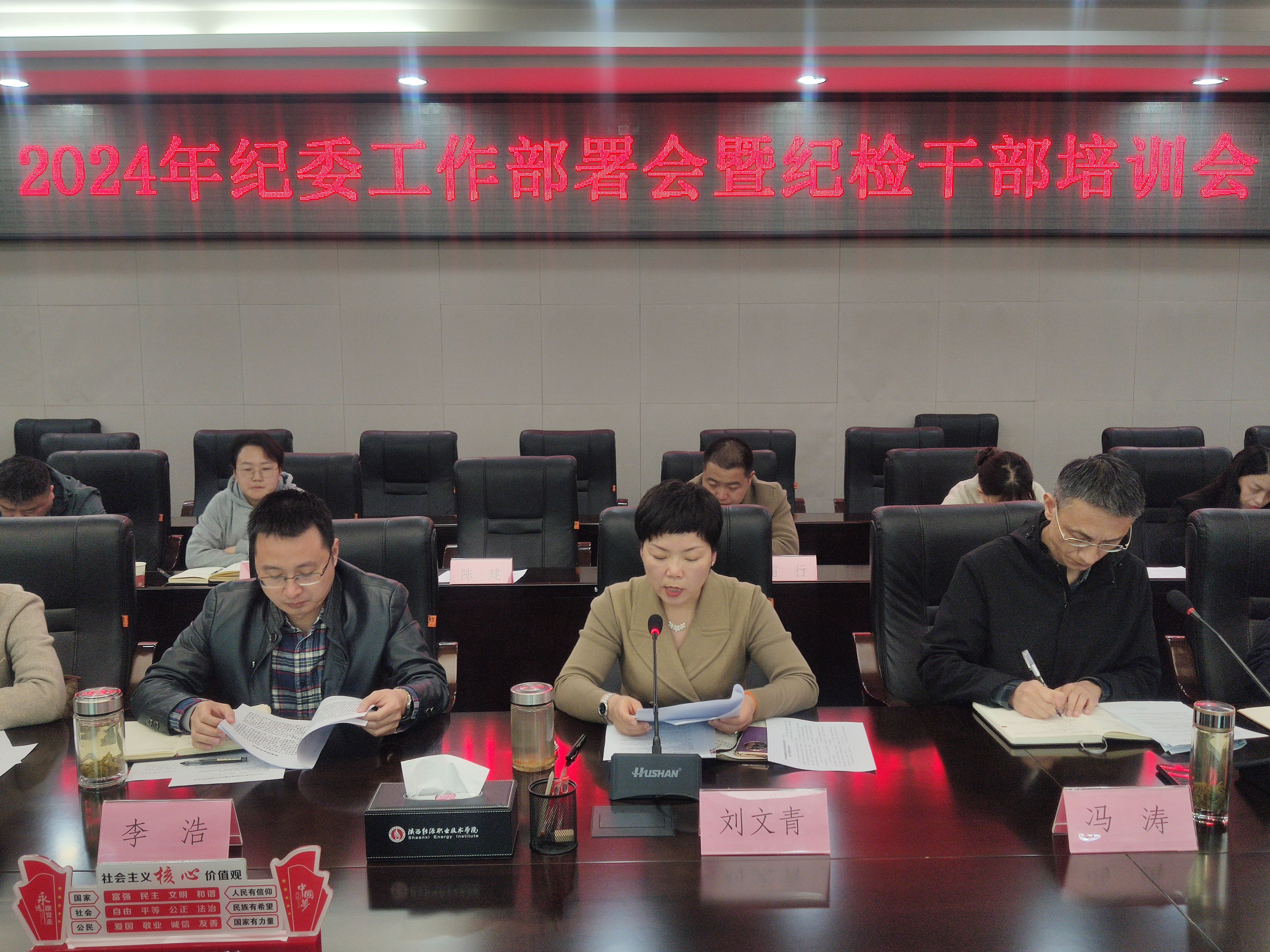 3月26日下午,学校纪委在办公楼第三会议室召开2024年纪委工作部署会暨纪检干部培训会,全体纪委委员、专职纪检干部、各党总支、各党支部纪检委员参加会议,会议由纪委副书记、纪委综合室主任冯涛主持。学校党委副书记、纪委书记刘文青出席会议并讲话。
