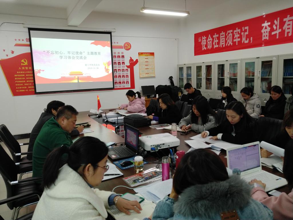 交流会上,各位党员教师结合学习情况畅谈学习心得体会,通过近一阶段的自学和集中学习,大家纷纷表示作为一名党员教师,“不忘初心、牢记使命”就是要强化武装,做习近平新时代中国特色社会主义思想的坚定信仰者,把立德树人作为教育的根本任务,提升教学质量,争做四有好老师,缔造一支素质优良甘于奉献的教师队伍。