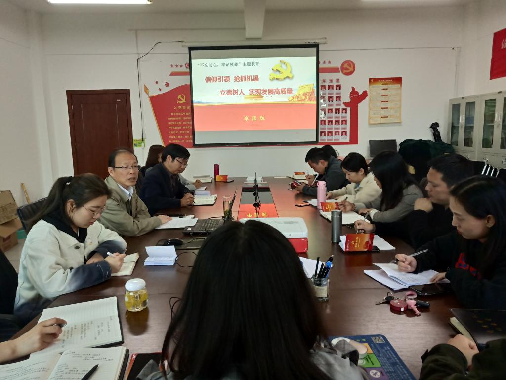 2019年10月28日,建工学院党总支在办公楼五楼会议室开展“不忘初心、牢记使命”主题教育学习,邀请校党委委员、李耀辉副校长为全体师生党员讲党课,李校长以《信仰引领 抢抓机遇 立德树人 实现发展高质量》为题,从信仰引领、抢抓机遇、立德树人、实现发展高质量以及如何实现等五个方面展开讲授。