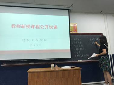 2018年9月2日建筑工程学院建工教研室组织2018-2019第一学期教师讲授新课公开说课,本次教研室教师讲授新课共涉及6门专业课,贺静静、康俊鹏、马立荣、相贝、程良5名教师,随后由专业教师和院领导进行了点评。通过公开说课,各位教师对所授新课内容侧重点把控到位,符合专业培养要求,新课内容准备充足,讲授有条理,教学准备充足。通过此次说课活动,确保了教师授新课的教学质量保障,在教学过程中更加自信。