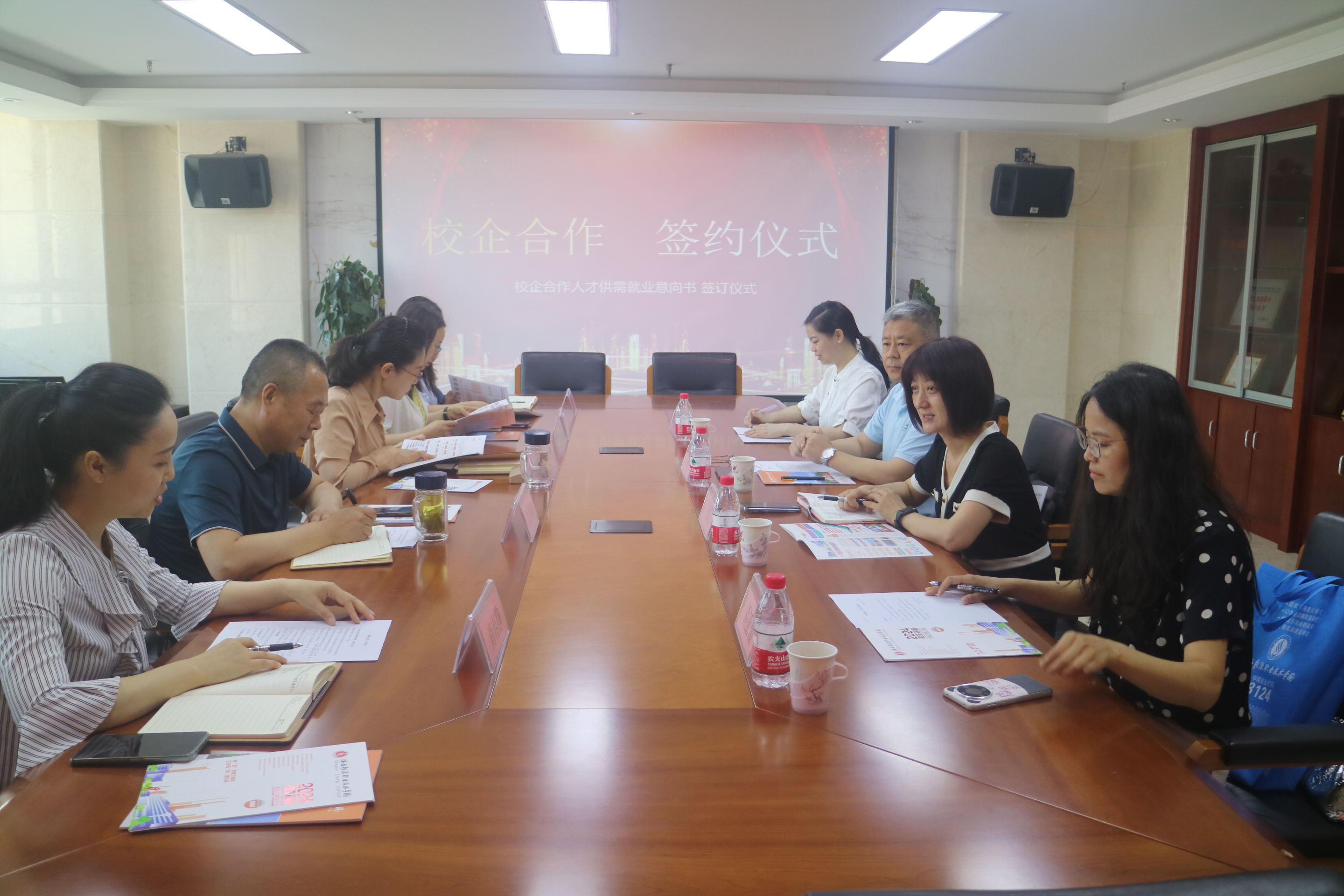 经过交流和沟通后,双方对对方在各自专业领域中取得的成就给予了高度评价!企业方一致认为,我院在专业设置、人才培养、与企业的需求是一致的,可以加强双方多方面的合作。随后,双方就实习基地建设、应届毕业生供需以及企业导师聘任等方面进行了深入讨论,达成了校企合作初步意向,并签署了《校企合作人才供需就业意向书》。