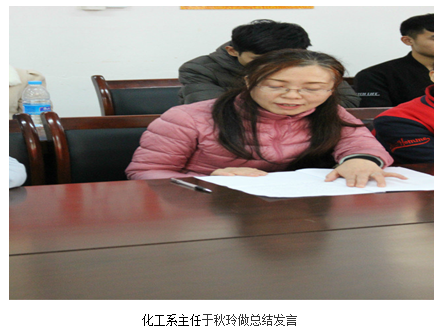 化工系主任于秋玲对本次活动做了总结陈词。她认为本次活动组织的很好,活动圆满成功。她希望通过本次活动,学生们能传承长征精神,用长征精神鼓舞自己,将爱国之志化为爱国行动,好好学习专业知识和技能,用自己的行动报效祖国。