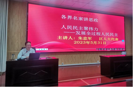 朱忠军从中国特色社会主义发展道路、人民民主是一种全过程的民主、人民当家做主的制度体系、发展全过程民主,保障人民当家做主等四个方面讲述了全过程人民民主的理论依据、历史沿革及实践方式。他以中华优秀传统文化、中西方制度对比及自身参政议政工作经历,用最朴实的语言让师生更加深刻体会到中国特色社会主义制度自信。