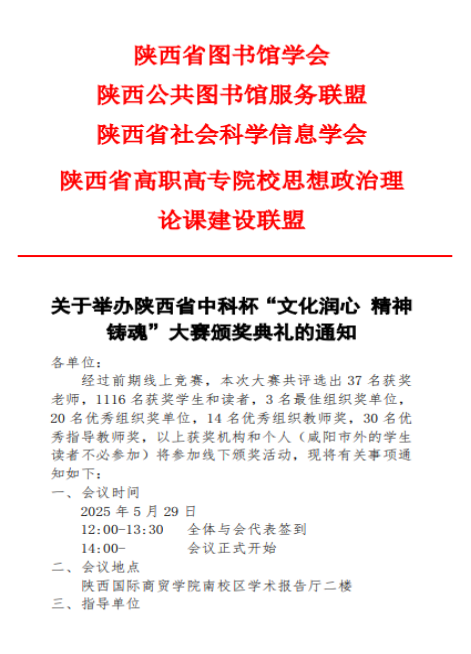 根据陕西省高职高专院校思想政治理论课建设联盟关于《开展陕西省中科杯“文化润心 精神铸魂”主题活动》的通知,马克思主义学院组织多名教师积极参加。本次活动于2025年4月1日至30日开展,以“思政课”、“红色讲堂”数据库为资源载体,通过双赛道设置,引导全省高校师生及图书馆从业者在知识竞答中深化对中华优秀传统文化的理解,推动社会主义核心价值观入脑入心。