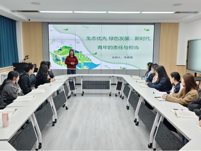 为深入学习贯彻党的二十届四中全会关于“加快经济社会发展全面绿色转型,建设美丽中国”的重要精神,增强高职大学生的生态文明意识和践行绿色发展的行动自觉,11月24日,马克思主义学院在博约堂举办了第三十二期菁英论坛活动,来自机电一体化、电子商务、大数据与会计专业的近30名学生参加。