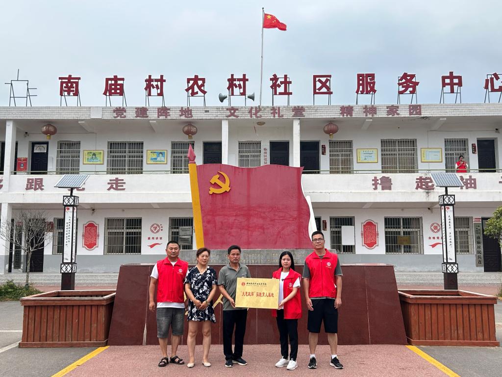 为深入贯彻落实习近平总书记关于“大思政课”的重要指示精神,加快构建“大思政课”工作格局,推进习近平新时代中国特色社会主义思想“三进”工作,落实全国“大思政课”实践教学基地建设要求,7月14日,我校在临潼区红色教育基地——南庙村庞玉芹事迹展览馆举行“大思政课”实践育人基地授牌仪式。南庙村党支部书记刘伟锋、我校马克思主义学院李晓琪老师、现代康养学院“青年乡村百里行,医路康养助振兴”社会实践队带队老师和全体成员出席仪式。