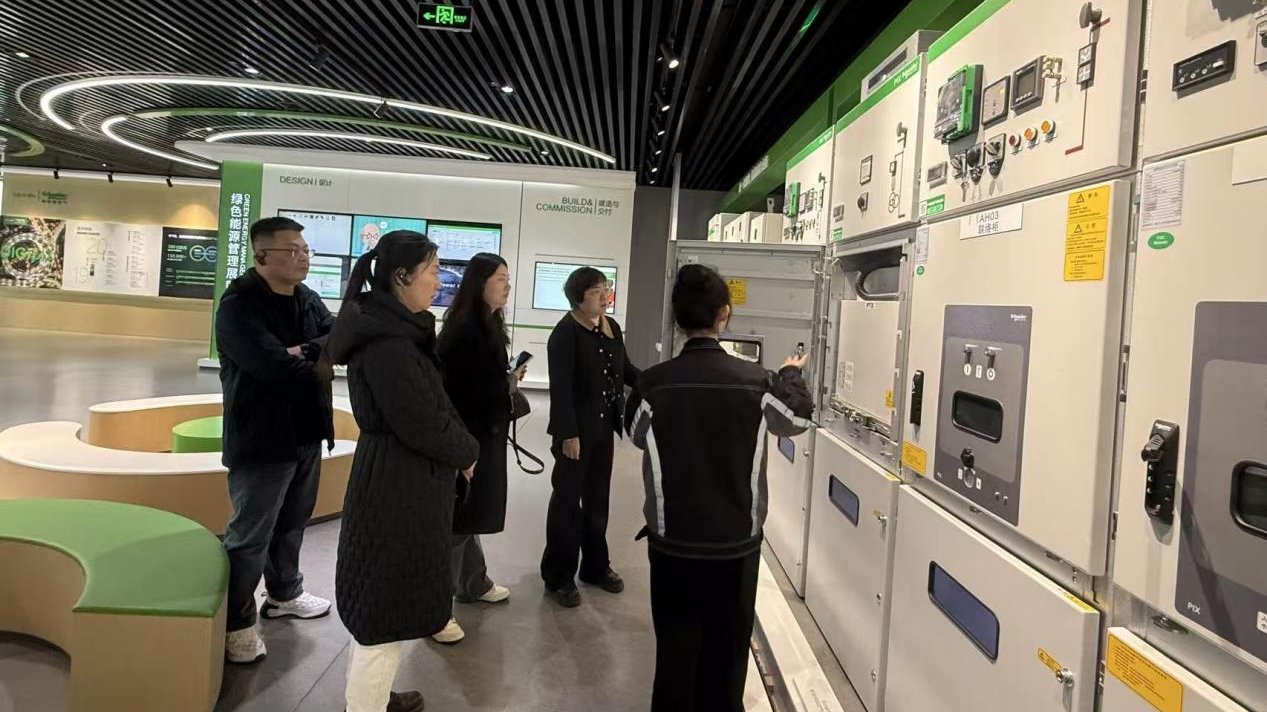 活动期间,在企业北方区域销售周经理的热情接待下,学院团队一行首先走进施耐德电气展厅,全方位了解企业近两个世纪的发展历程、核心业务布局、技术创新成果及所获荣誉资质,近距离观摩学习了施耐德电气在配电、自动化控制等领域的先进产品,深入感受企业在数智化转型和绿色智能制造方面的前沿理念。