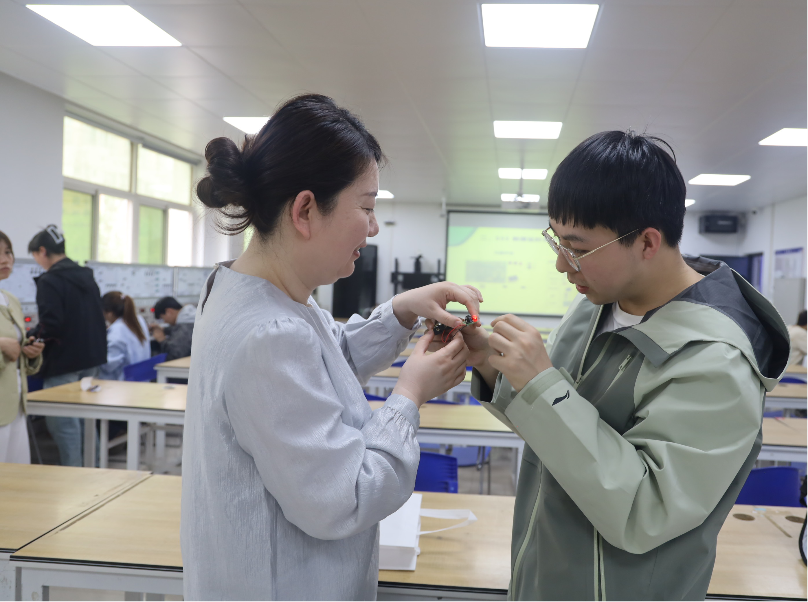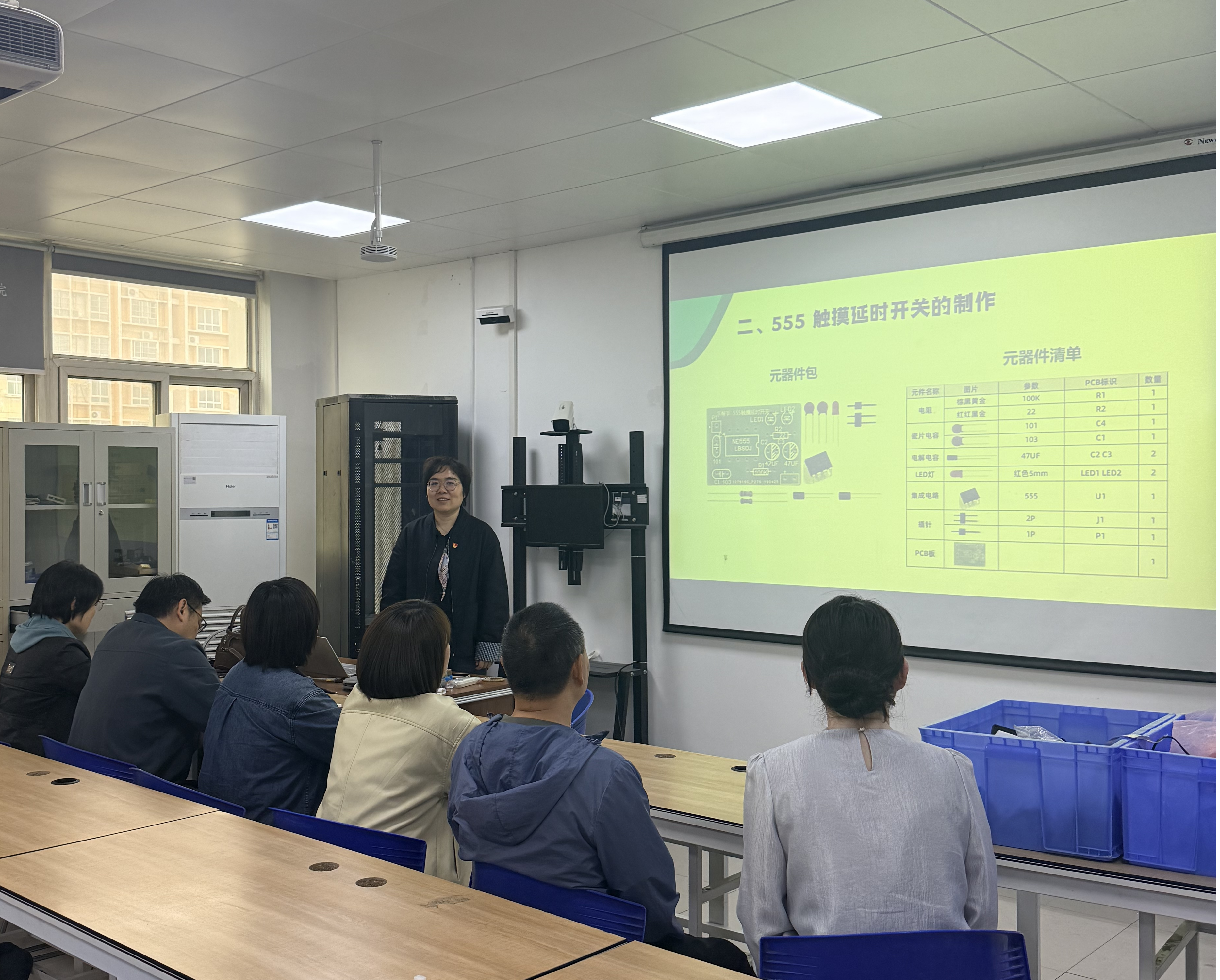 会上,教研室主任李阿妮首先传达了学校关于提升实践教学质量的相关要求,明确当前专业建设需紧扣“技能型人才培养”主线,强调要将实训场景建设与行业前沿技术需求紧密对接。随后,教师们结合日常教学实际,就实操教学环节展开热烈讨论。大家一致认为,工业自动化专业重在实践,需进一步优化实训内容设计,如规范“三五定时器”等核心元件的焊接实训流程,完善接线图指导标准,同时要不断引入新的实训项目,让学生在亲手操作中深化对电气控制原理、源网荷储一体化技术等专业知识的理解。