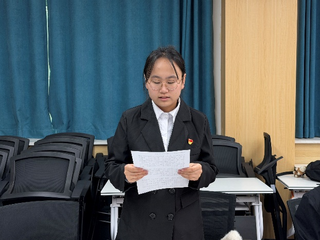 按照议程,任宝静、武龙江、李磊三位转正对象依次汇报预备期表现,结合学工岗位实际,详细阐述了自身在思想、工作、学习及作风上的成长,深刻查摆不足、明确改进方向,郑重表达了按期转正、践行党员义务的坚定决心。