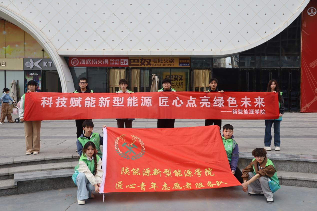 为深入贯彻立德树人根本任务,落实“三全育人”“五育并举”工作要求,厚植学子爱国情怀,弘扬工匠精神与绿色低碳文化,更以实际行动传承践行雷锋精神,新型能源学院结合“一院一品”建设,将志愿精神、雷锋精神与新能源科普深度融合,组织开展新能源科普宣传志愿活动。3月22日,以“科技赋能新型能源,匠心点亮绿色未来”为主题,在秦都万达广场门口开展线下科普宣传,用专业服务诠释雷锋精神内涵,以实际行动传递绿色发展理念,展现新时代青年学子的责任与担当。