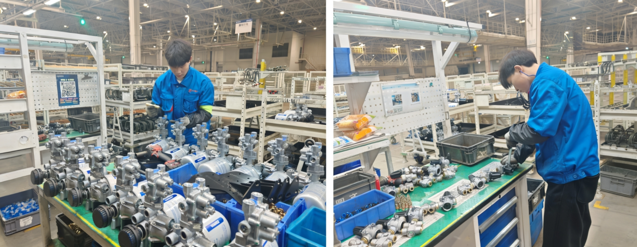 在干燥器罐装配工位的实践,让我直面重卡气路系统的关键零件,真切体会到一线工作的不易与重任。干燥器罐关乎重卡刹车安全,擦接口、卡密封圈、用扭力扳手精准拧紧,每一步都有严苛要求,差之毫厘便可能埋下安全隐患。师傅十几年坚守“仔细”二字的职业态度,深深感染了我。实操中我深知,手劲大小、操作规范都容不得半点马虎,课本中的“安全”二字,从来都不是空话,而是工人师傅用一次次精准操作守出来的底线。这段经历让我学会沉下心、抠细节,今后我也会以这份严谨认真对待学习与生活。