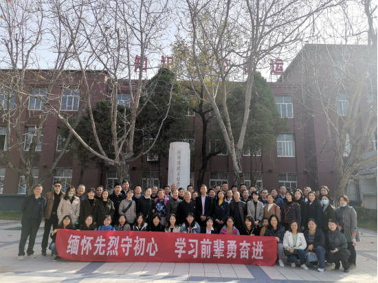 下午全体人员赴罕井办学旧址重温校史,在办学遗址纪念碑前严德才同志给全体党员同志们讲解了罕井办学历史,从最初建校、办学历程、校园建设、搬迁过程做了详细介绍。聆听着老人的讲解,置身于当时的历史时空,老一辈能源人创造性的办学过程,拼搏奉献、求实创新的精神,深深的震撼了每一位同志。