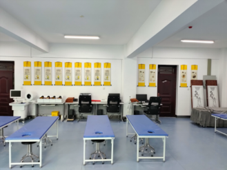 校内实验实训条件优越,配套齐全、设施完善。配有19寸液晶触摸屏足部反射区教学系统、针刺手法参数设定仪器、中医舌诊图像分析系统等多种现代化实训设备。
