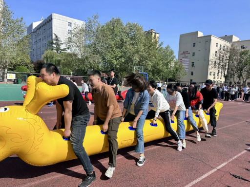 2024年4月12日下午,现代康养学院部分教职工参加了校工会组织举办的教职工运动会,其中咸阳校区教职工参加了旱地龙舟、迎面接力、定点投篮和8字绕长绳四个项目,临潼校区教职工参加了螃蟹夹球活动项目。两校区教师都积极准备,齐心协力、精神抖擞的参加了比赛。