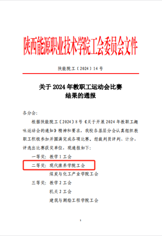 现代康养学院在学校教职工运动会比赛荣获二等奖