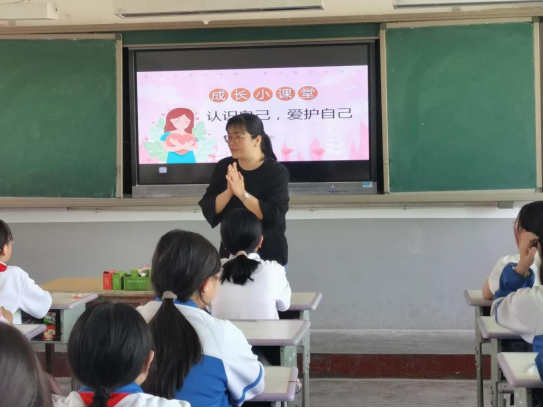 活动中,贾彤老师以“青春期女性生理知识与安全防范”为主题,为孩子们带来了一堂温暖而实用的专题讲座。她用通俗易懂的语言,结合生活实例,讲解了青春期的生理变化、卫生保健及安全防护知识,帮助孩子们消除成长中的困惑,增强自我保护意识。贾老师亲切的讲解方式赢得了同学们的积极回应,大家纷纷举手提问,课堂氛围轻松而热烈。
