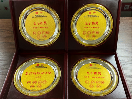 医学美容技术专业四名学生获得的金手指奖、最佳眉形设计奖奖牌