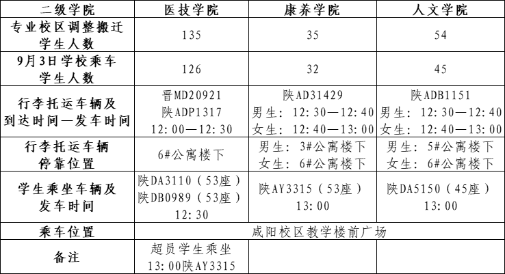 搬迁过程中,学生处与各二级学院通力合作,不辞劳苦,克服困难,调度大巴车及行李托运车8辆,组织志愿者队伍,为搬迁到临潼校区的学生提供助力。所有车辆每个座位上都为学生准备便餐以及饮用水,学生处全体人员、各学院辅导员老师、学生志愿者,为学生提供了清理物品、搬运行李、装车、发放简餐等暖心服务,为学生搬迁提供便利。全校师生共同描绘出一幅“上下同心,攻坚克难”的生动画面。