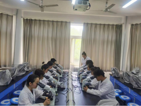 随后,两位教师示范操作外周血白细胞计数及血清总蛋白测定,并为学生讲解操作要点及注意事项,强调生物安全的重要性。