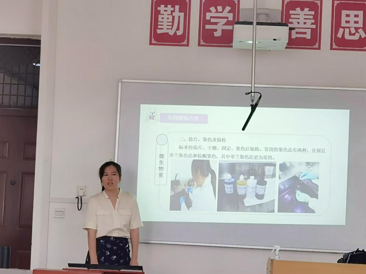 王盼分享了自己在暑期社会实践中的收获与体会,一是必须将生物安全教育融入到课堂当中,让学生们树立健康安全的意识,保证实验操作的严谨性和科学性;二是要加强学生职业道德教育,提高职业素质;三是及时调整人才培养方向,适应市场需求。