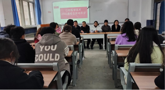 为了进一步增强校企班学生的责任意识,快速适应校企班的学习和生活,2月20日,口腔医学技术专业在教学楼109召开2023届校企班动员会。学院党总支书记巩明发、副书记韩晓磊、副院长李蕊、梁爽、教学办主任赵星、学工办主任郑倩、口腔教研室教师、口腔2023届校企班辅导员及全体同学50余人参会。会议由口腔教研室主任董伟主持。