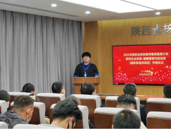 陕西省城市经济学院贾宇飞代表学员表态,会珍惜学习机会,严格遵守培训纪律,加强学习交流,在实践中改善教学方法、创新教学手段,提升育人实效。