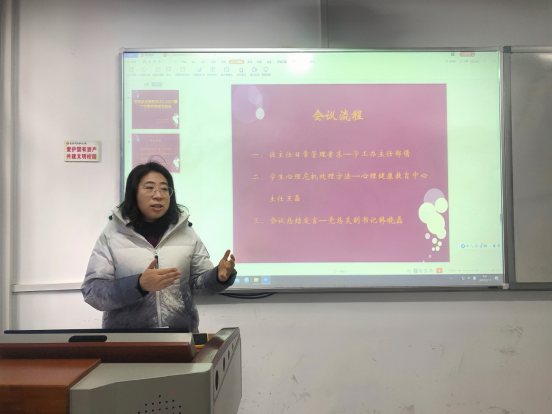 王晶着重从班主任如何精准有效发现疑似精神障碍类学生,如何展开心理评估、确定学生心理疾病严重程度,如何有效掌握交流话术与学生开展谈心谈话以及如何精准有效的采取措施、有的放矢的处理学生心理危机事件等四方面展开讲解培训,层层递进,为学院班主任、辅导员全方位搭建了集咨询服务、预防干预、平台保障、实践活动、教育教学“五位一体”的心理健康预警机制及工作格局。