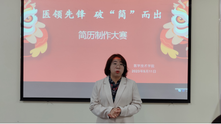 为丰富大学生活,帮助学生提高职业素质和求职能力,5月11日,医学技术学院举办“医领先锋 破‘简’而出”简历制作大赛。本次大赛共有200余名学生参加,经过前期初评筛选,最终确定30名选手进入决赛环节。医学技术学院党总支副书记韩晓磊及全体辅导员担任大赛评委。